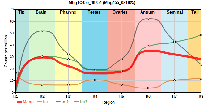 | 8. | MligTC455_22039 | 12583 | 262.14 | Mlig455_000790, Mlig455_034225 | Neo: - Age: - Regeneration-downregulated BL: -1.468 Regeneration-depleted BL: -1.468 |