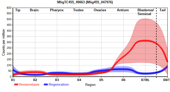 | 2. | MligTC455_49062 | 16015 | 333.64 | Mlig455_011763 | Neo: - Age: - Region-enriched R7: 3.172/0.00000 Regeneration-downregulated BL: -2.793 Regeneration-depleted BL: -2.793 |