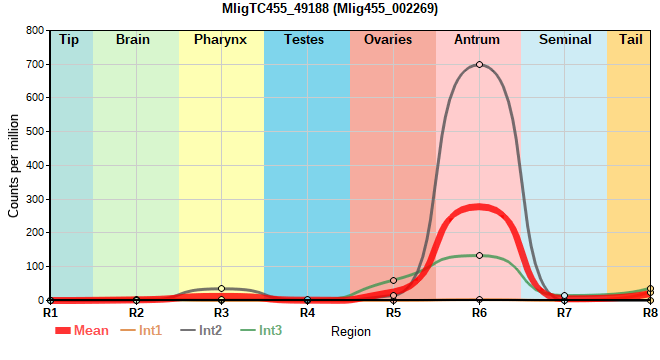 | MligTC455_49188 | 2341 | 48.77 | Mlig455_002269, Mlig455_002314 | Neo: - Age: - Region-enriched R6: 6.536/0.00415 |