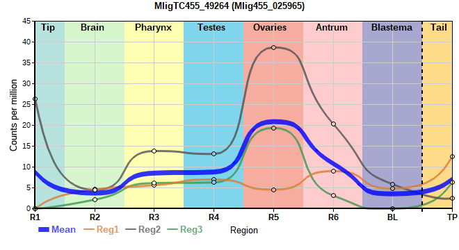 | 59. | MligTC455_14979 | 298 | 6.22 | Mlig455_001543, Mlig455_046559 | Neo: Germline Age: - Region-enriched R2: 5.497/0.00789 Regeneration-upregulated R4: 6.777 Regeneration-enriched R4: 6.777 |