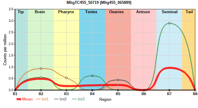 | 4. | MligTC455_53735 | 124 | 2.58 | Mlig455_043944, Mlig455_044023 | Neo: Int S/G2/M Age: Up-Down-Down Region-enriched R2: 4.522/0.00648 |