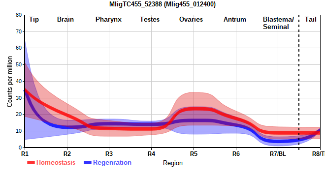 | 85. | MligTC455_40366 | 1075 | 22.39 | Mlig455_003182, Mlig455_003384 | Neo: Neoblast, stringent Age: - Region-enriched R5: 2.088/0.00106 |