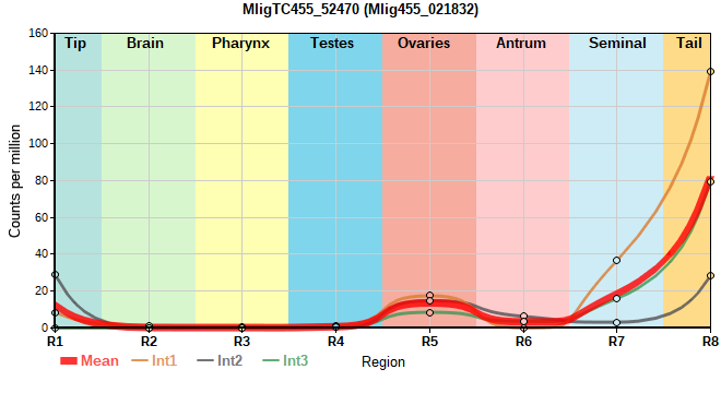 | 59. | MligTC455_53025 | 243 | 5.06 | Mlig455_017172, Mlig455_048121 | Neo: - Age: - Region-enriched R8: 3.427/0.00445 |
